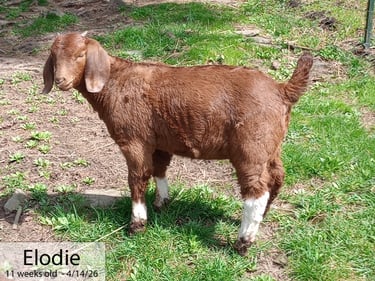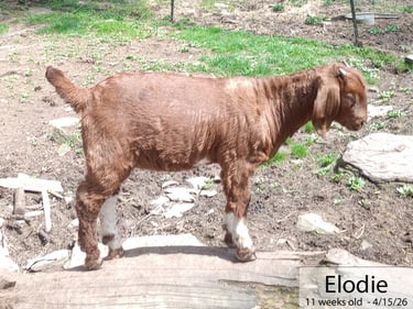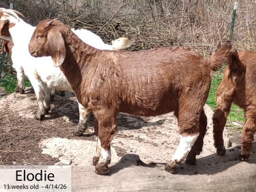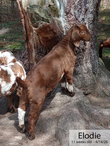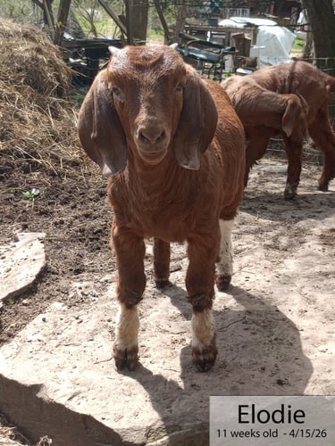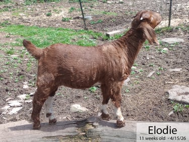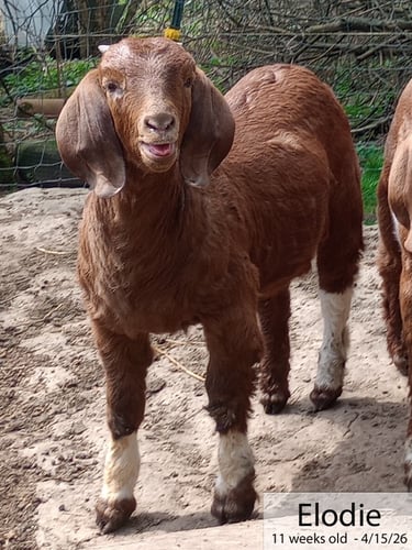 Elodie is out of one of our top does, Emmy. If you're looking for a hardy, maternal, productive doe, Elodie could fit the bill! This girl is straight out of my keeper pen due to trying to manage numbers.The dimension on this doe is exactly why I bred Emmy to Ranger! I knew it was going to be a good cross!
