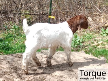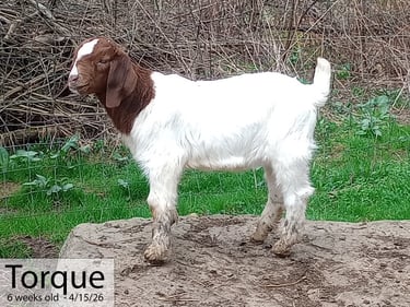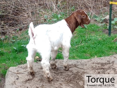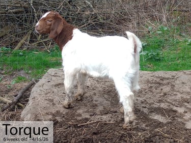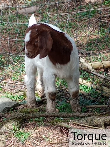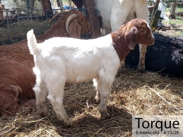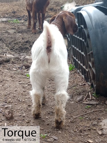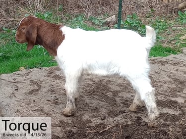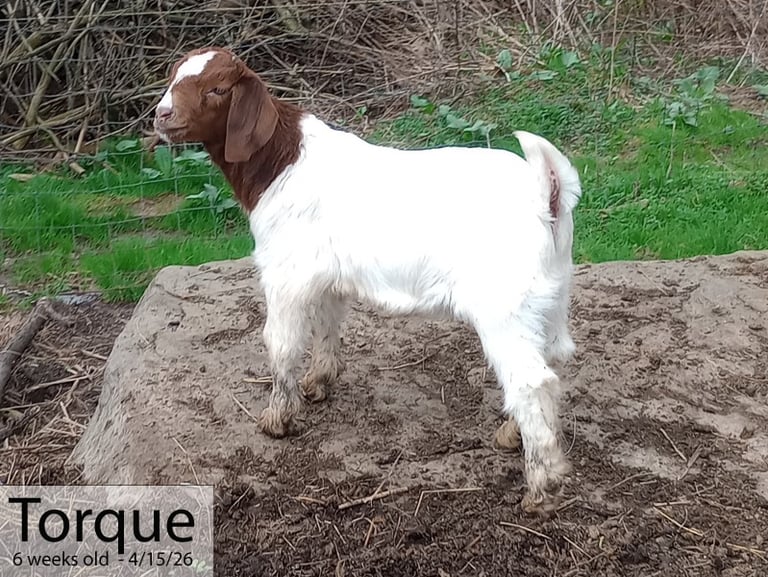 Torque is currently on the small side due to Simone going off feed and her milk production dropping, temporarily (and the boys refused a bottle *roll eyes). He is sweet and mild mannered. I love how square he stands! Once he catches up, I think he is going to be NICE! His full sister from last year is VERY pretty and stylish! This is a good cross!