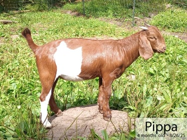 Summer joined our herd in August 2024. She comes from Brian and Melisa Pardee's beautiful herd in Cold Brook, NY. When Melisa offered her to me during their herd reduction, I couldn't say no. Summer's dam, Sunny was a very successful show doe, amassing over 100 points from multiple Overall Grand and Reserve championships, as well as Division Championships and class wins. I also always admired Sunny's sire, a BIG dapple buck, as well!